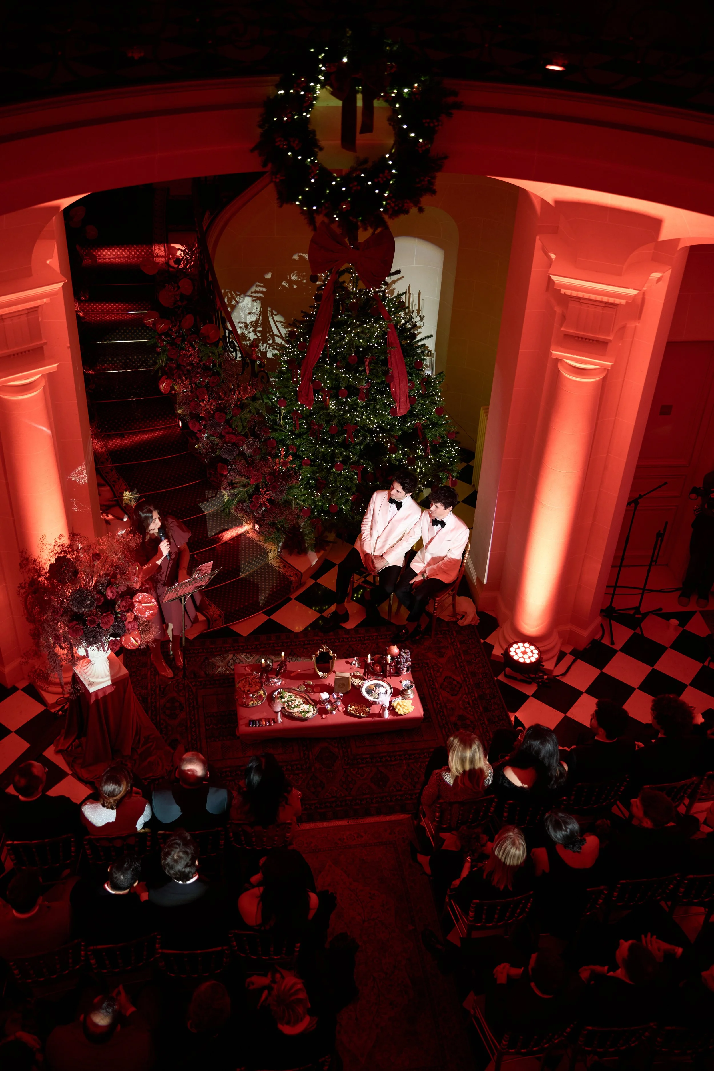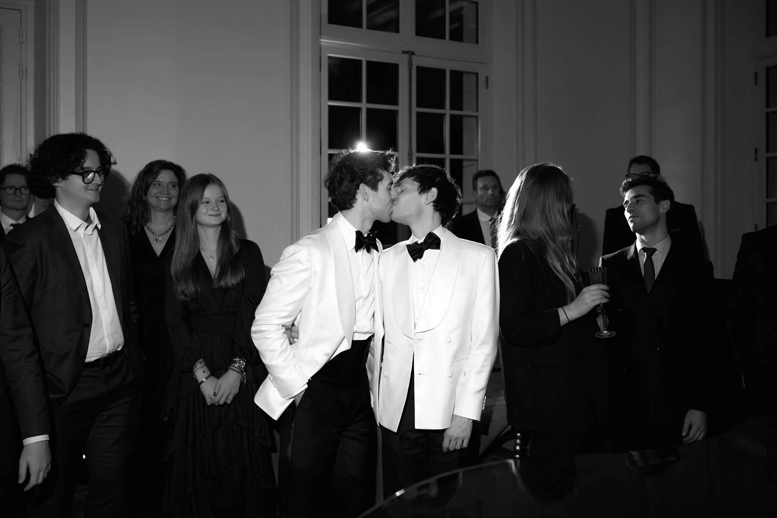 As evening fell, the château transformed into a cozy celebration. Long tables shimmered with candlelight, glasses clinked, and conversations flowed easily. Christmas vibes lingered in every corner, from the warm glow of lights to the joy that filled the room. Music rose, drawing everyone together, laughter mixing with happy tears on the dance floor.