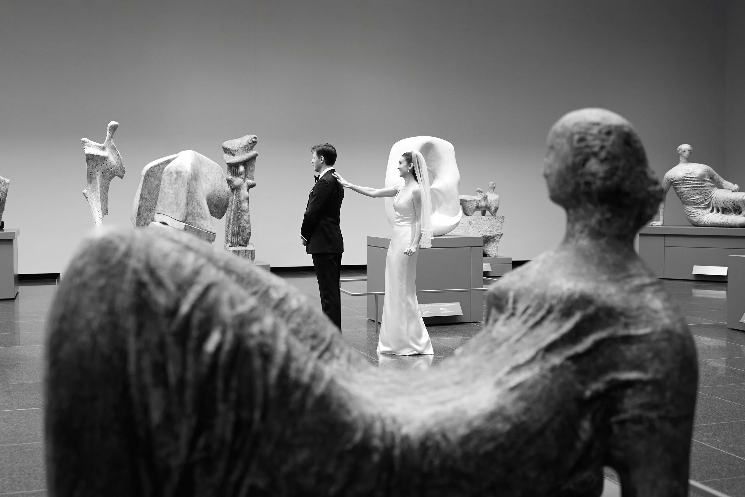 / C and O’s intimate wedding unfolded within the stunning Art Gallery of Ontario, where modern light, soaring architecture, and timeless sculptures created an atmosphere unlike any other. Surrounded by the quiet beauty of the gallery’s curated spaces, their celebration blended emotion, artistry, and authenticity. Though intimate, a small circle of their closest friends and family gathered among the museum’s exhibits to witness their heartfelt ceremony—an emotional moment framed by soft light and the presence of remarkable artworks. Every detail, from the thoughtful decorations to the gentle hum of the gallery, made the day feel deeply personal and beautifully unique. As the evening continued, guests shared exquisite food, warm stories, and genuine laughter. The interplay of light on the sculptures, the elegant ambiance of the gallery, and the couple’s undeniable connection transformed the celebration into an unforgettable experience. It was a day full of emotion, beauty, and joy—one their loved ones will cherish forever./